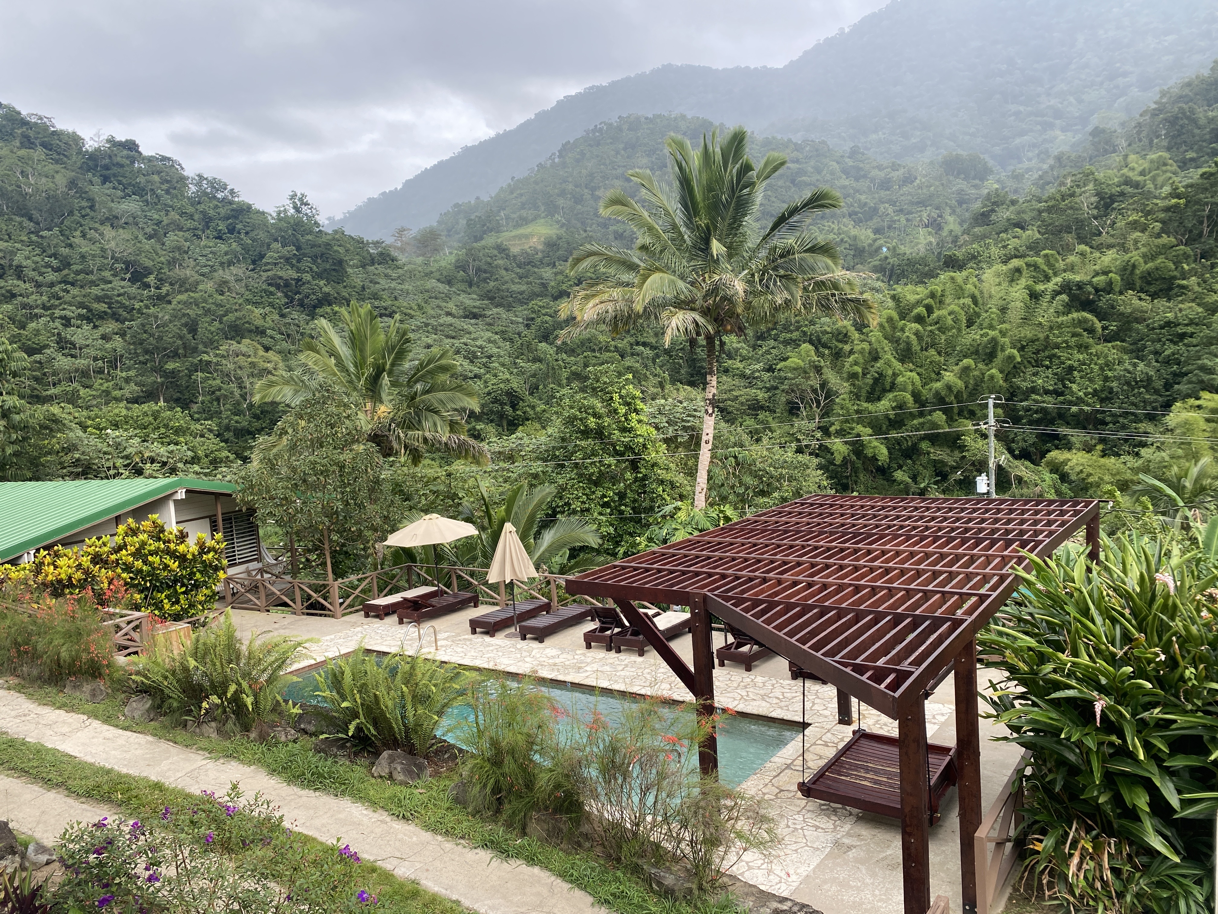 Ondertussen is het Drie Koningen en wachten we nog steeds op onze onderdelen. Salinas kennen we inmiddels wel en aangezien we niet steeds een auto willen huren bestaan onze dagen steeds meer uit een wandelingetje naar de bakker of de supermarkt en zo nu en dan een drankje of een hapje eten in de vele etablissementen in de omgeving van de baai. In de marina zelf zit overigens een prima restaurantje met een keer per week verse sushi en sashimi. Uiteindelijk vertrekken langzaamaan onze vrienden van de andere boten. We besluiten dat het tijd is om er een paar dagen tussenuit te gaan en boeken een verblijf op een oude plantage. Casa Grande Mountain Retreat is nu een retraite oord geworden met yoga sessie, massages en, naar ze zeggen, gezond en uitstekend veganistisch eten. Als carnivoor pur sang moet ik toegeven dat het inderdaad prima eten was. Het is een prachtige omgeving met mooie kamers. Helaas regende het bijna 2 dagen non-stop zodat we de omgeving vooral vanonder een afdakje en vanuit de auto hebben gezien. Maar het was een heerlijke afwisseling. Op de terug weg passeren we eerst de Caonillas stuwdam en daarna Cañón Blanco, een indrukwekkende witte rotspartij waardoor met veel geweld het regenwater uit de bergen wordt geperst.