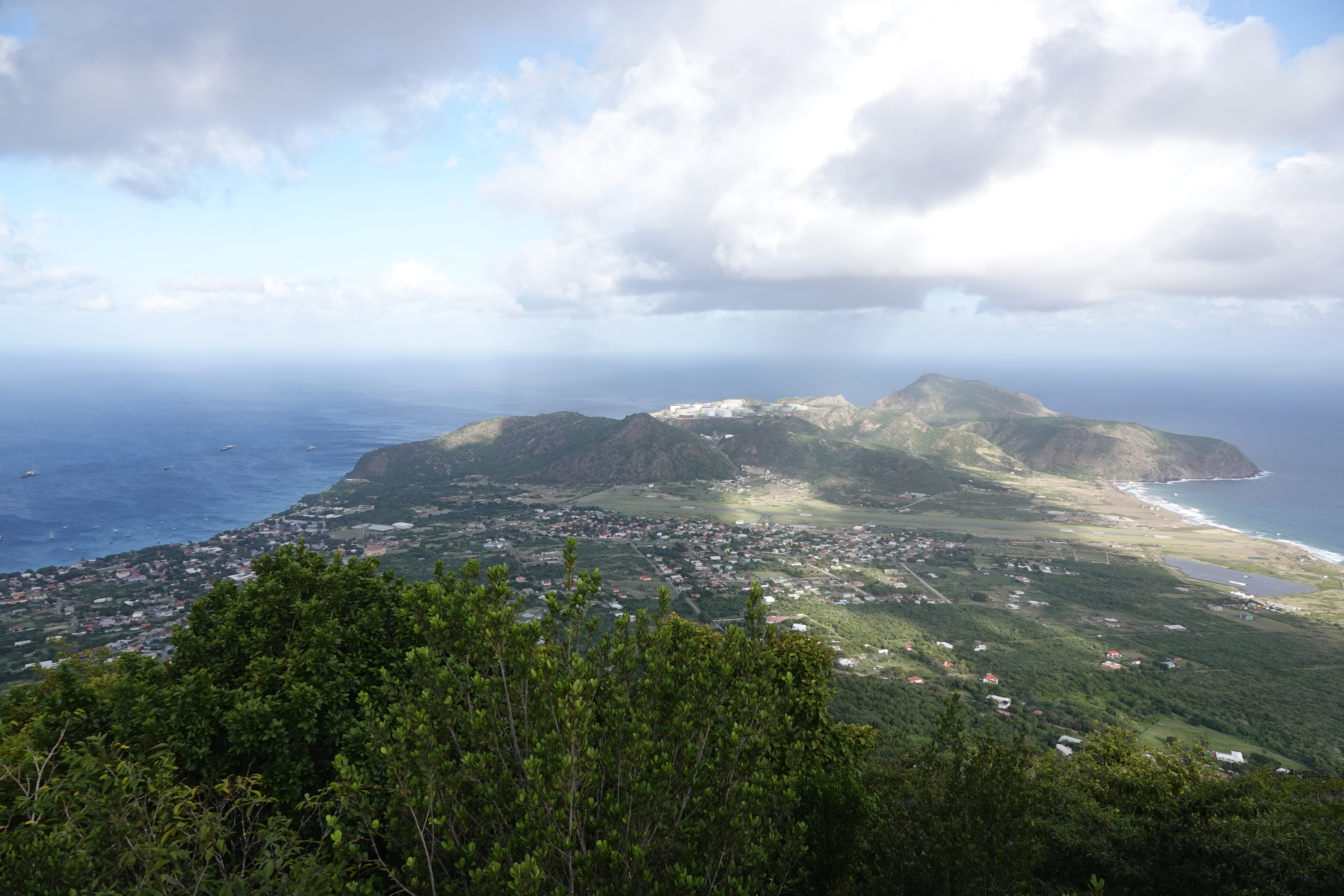 Eind van de middag stappen we aan boord van de ferry, een snelle catamaran, die ons via Saba naar St. Eustatius of in de volksmond Stacia zal brengen. De tocht blijkt extreem oncomfortabel. Er staat een flinke zeegang maar dat verhindert de kapitein niet om met 20 knopen tegen de golven in te beuken. Na niet al te lange tijd vult de cabine zich met de lucht van zeezieke passagiers. Gelukkig is elke stoel uitgerust met een flinke hoeveelheid zakjes… Gelukkig houden wij het droog maar zijn we maar wat blij als we er op Saba even uit mogen om de douane verplichtingen voor de twee eilanden te voldoen. Even frisse lucht en vervolgens met de helft van de oorspronkelijke passagiers door naar Stacia waar we laat in de avond arriveren. Jolly en Ed staan als ontvangst committee al klaar en rijden ons door pikdonkere weggetje naar ons hotel. Quill’s garden is een mooi gelegen hotel aan de voet van de vulkaan de Quill met uitzicht over zee.