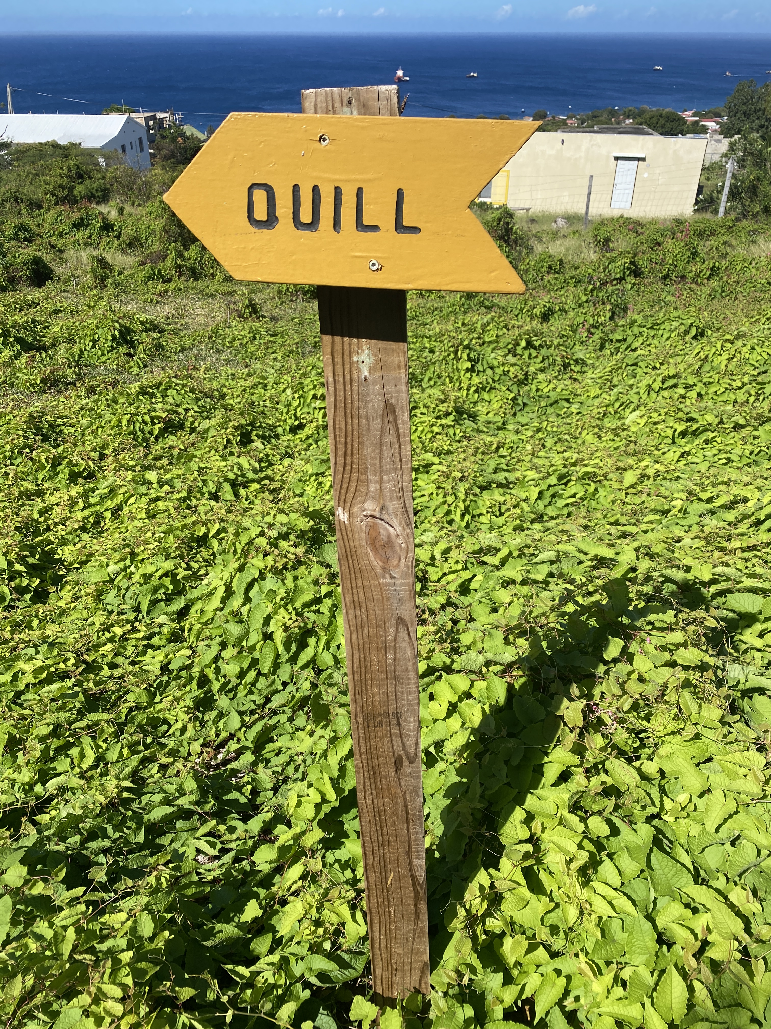 De volgende ochtend worden we door Ed opgehaald. Annette gaat naar de school van Jolly waar de kinderen worden voorbereid op het bezoek van Willem A., Maxima en Amalia de volgende dag. Ik ga met Ed te voet op weg naar de top van de Quill. De Quill is een slapende Vulcaan van ruim 600 meter hoog. De laatste uitbarsting was ergens tussen 100 – 400 na Chr. dus veel zorgen heb ik me niet gemaakt. De krater is een mooi regenwoud en de ook de buitenkant van de vulkaan is flink begroeid waardoor we grotendeels in de schaduw lopen. Onderweg komen we veel heremietkreeften tegen. Deze beesten gaan helemaal naar de top en scharrelen lekker rond op de rand van de krater. Als de schelp te klein wordt laten ze zich de berg afrollen om op het strand een passende behuizing te zoeken. Maffe beesten. Op de top hebben we een prachtig uitzicht over vrijwel het hele eiland met in de verte Saba.