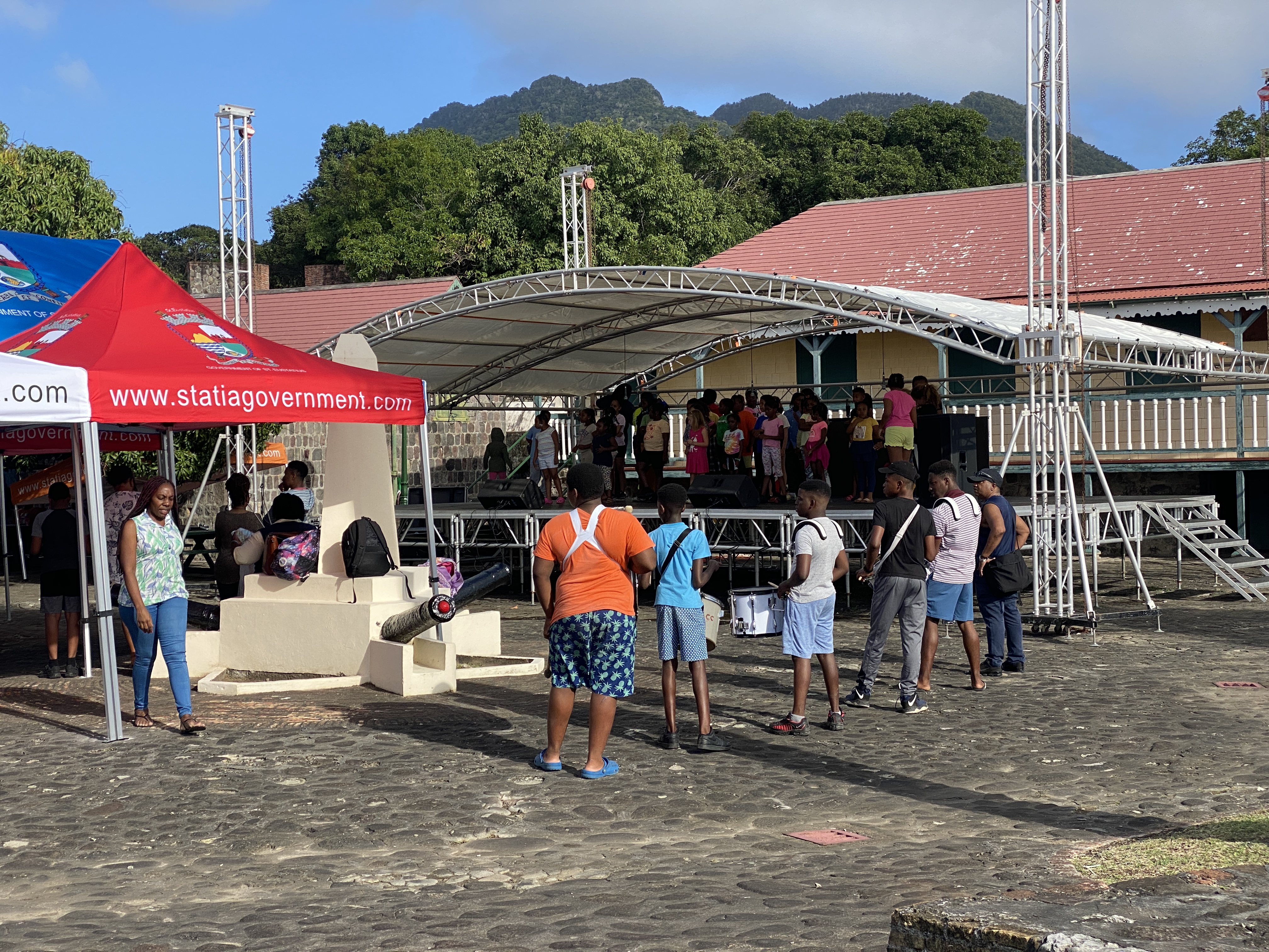 We zijn nu bijna een week hier en hebben nog weinig ondernomen. We waren van plan naar St. Eustatius te varen om een oud-collega van Annette te bezoeken. Jolly woont daar met Ed en zij is directeur van de basisschool op het eiland. Van verschillende mensen horen we dat ankeren bij St. Eustatius op zich prima gaat maar dat je er eigenlijk altijd flink rolt. We besluiten daarom om de ferry te pakken. Hiervoor moeten we met de bus naar Philipsburg aan de Nederlandse kant. Het is zondag en als we aankomen in Philipsburg blijkt bijna alles gesloten te zijn. Zelfs een kop koffie blijkt voor 12 uur in de ochtend bijna niet verkrijgbaar. We lopen wat rond door het stadje wat, zolang je niet te ver van de kust wegloopt, er aantrekkelijk uitziet. Er wordt hard gewerkt aan de bestrating want het bezoek van Willem-Alexander en Maxima staat voor de deur. De orkaanschade is nog steeds ook hier zichtbaar.