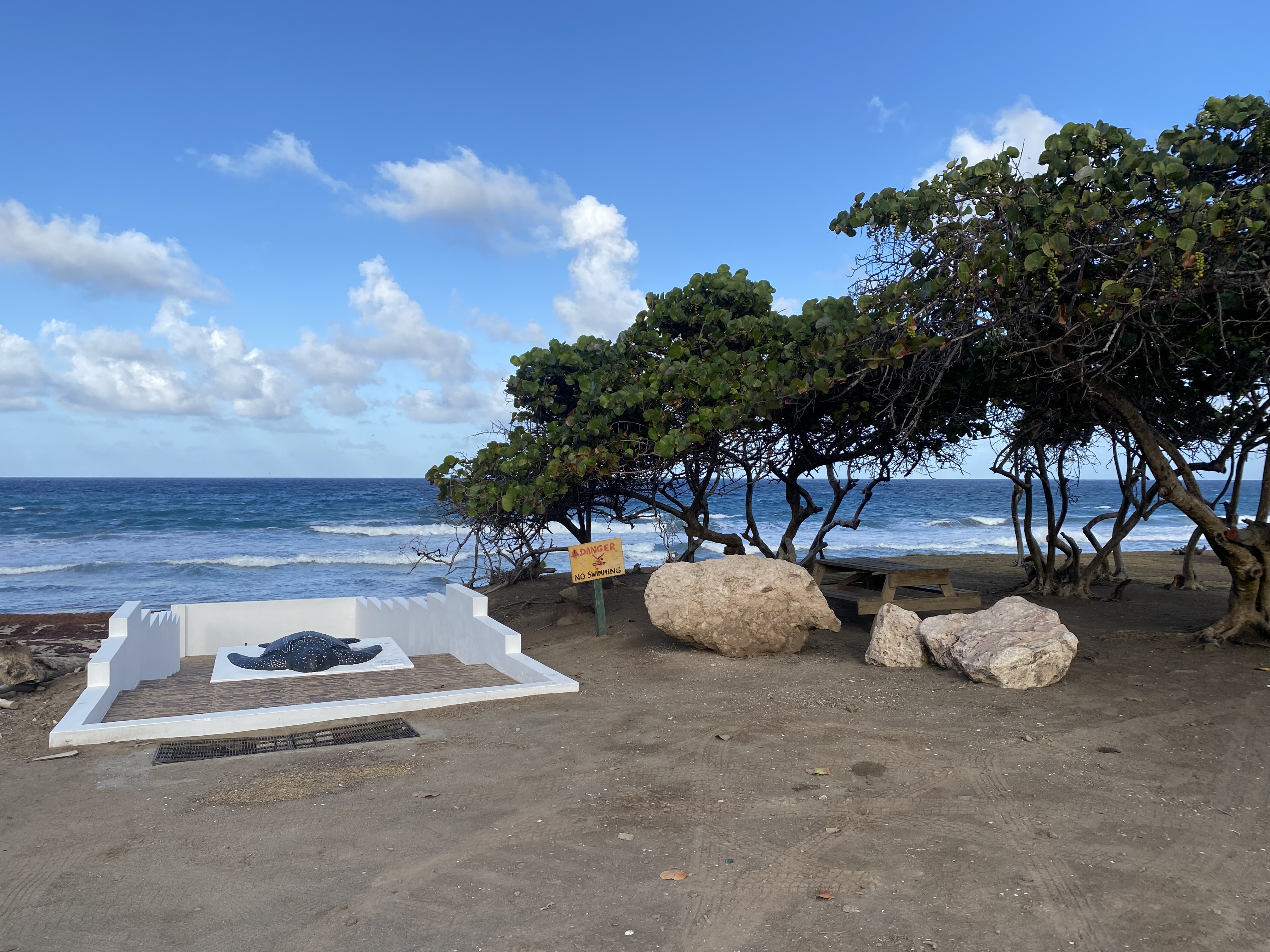De eerste dag besluiten we de oostkant van het eiland te verkennen. We rijden naar Le Vauclin en komen erachter dat, door het vele rottende sargassum wier (sargassum wier is een groot probleem in het Caraibisch gebied en een bedreiging voor de zeeschildpadden) en de ruwe zee, zwemmen aan deze kant van het eiland niet aanlokkelijk is. We rijden door naar La Trinité en genieten van een heerlijke Caraïbische lunch. Aangezien het strand blijft lokken steken we over naar de oostkant van het eiland en bij Sainte Luce vinden we een prachtig strandje met uitzicht op Le Diamand en grenzend aan een mooi en beschermd mangrove bos.