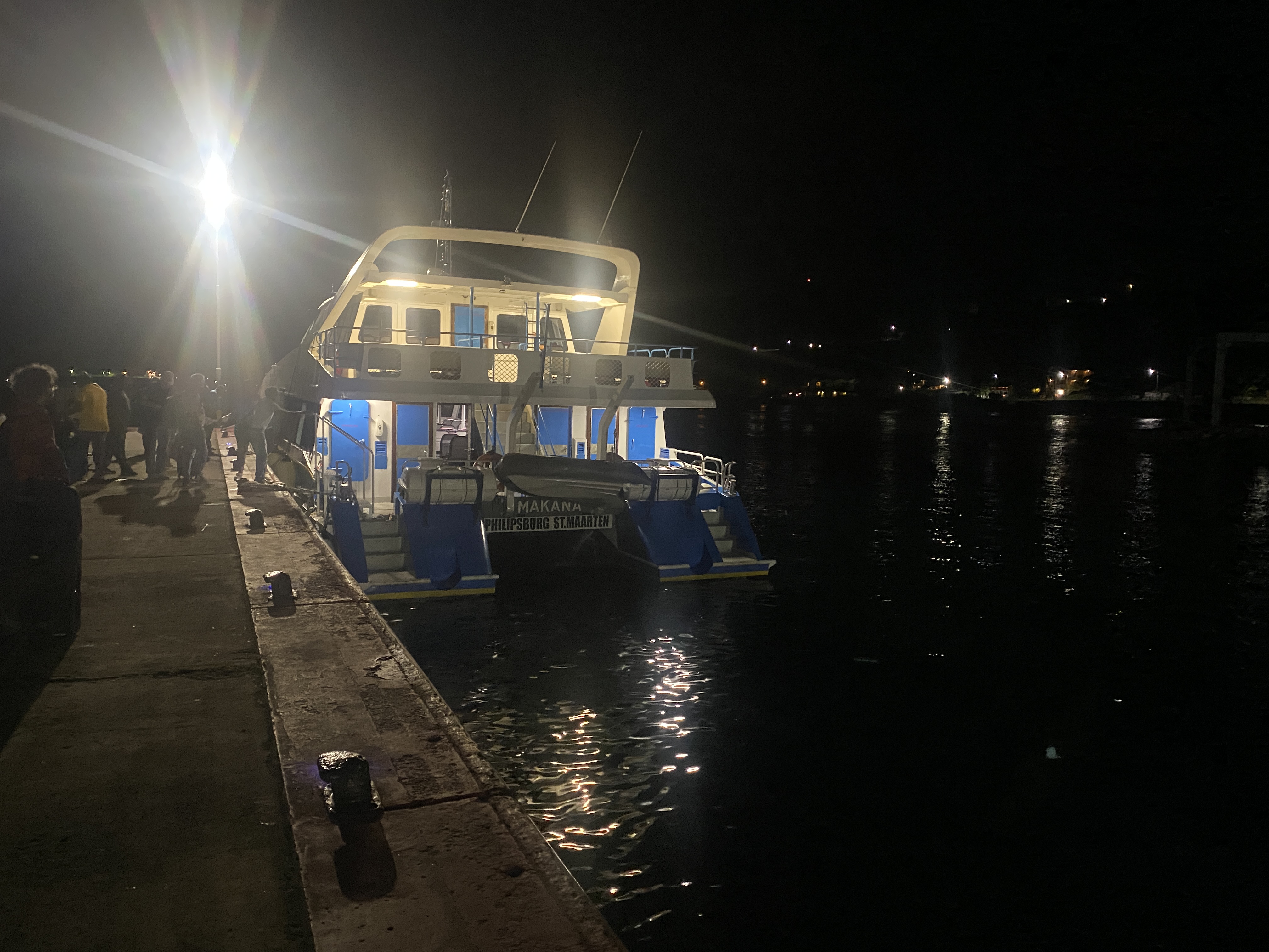 Inmiddels blijken hier veel bekenden te zijn neergestreken en we besluiten om een kleine reünie te houden in de Sint Maarten Jachtclub op het Nederlandse deel van het eiland. Dit blijkt nog een flinke tocht met de dinghy over de lagune. Onderweg ook nog diverse boten die de orkaan niet ongeschonden zijn doorgekomen. Na een gezellige middag met een hapje en een drankje in het donker weer terug richting Marigot. Een beetje op de tast door de lagune en dan proberen je eigen boot te vinden ergens tussen vele andere in het mooring-veld blijkt een uitdaging. Normaal hangen we bij dit soort gelegenheden een fel knipperend lampje onder de zonnepanelen maar dat zijn we deze keer vergeten.