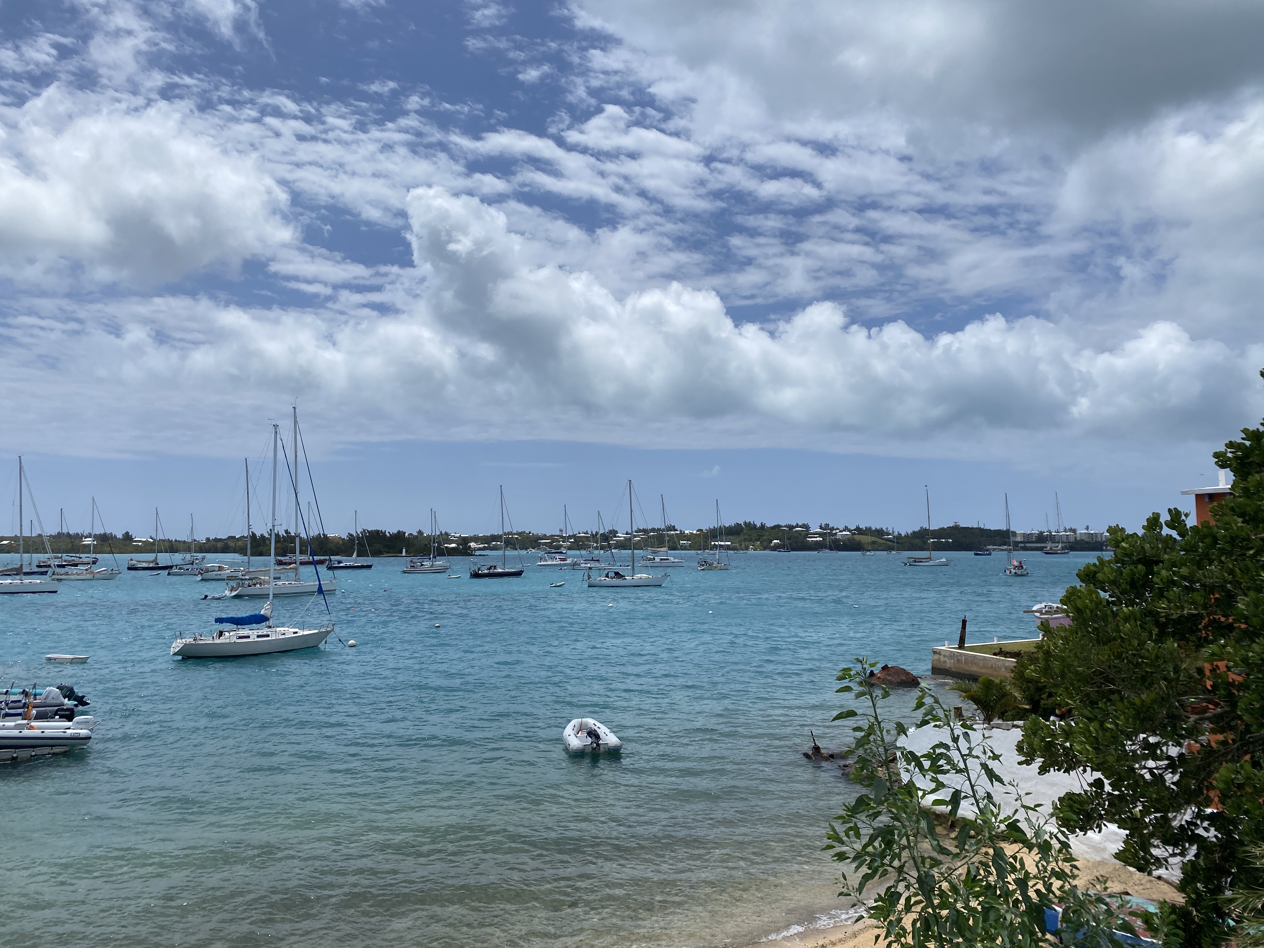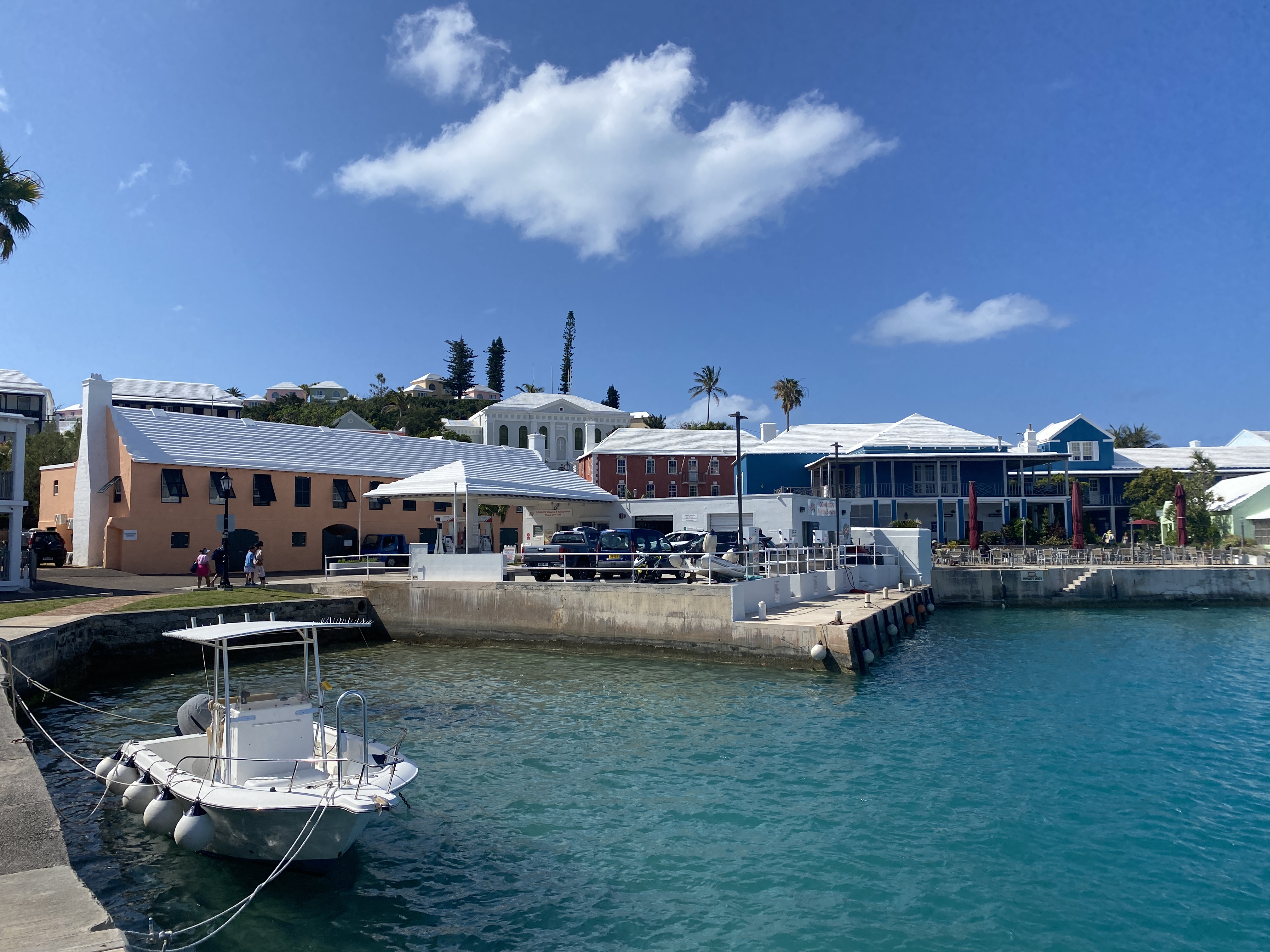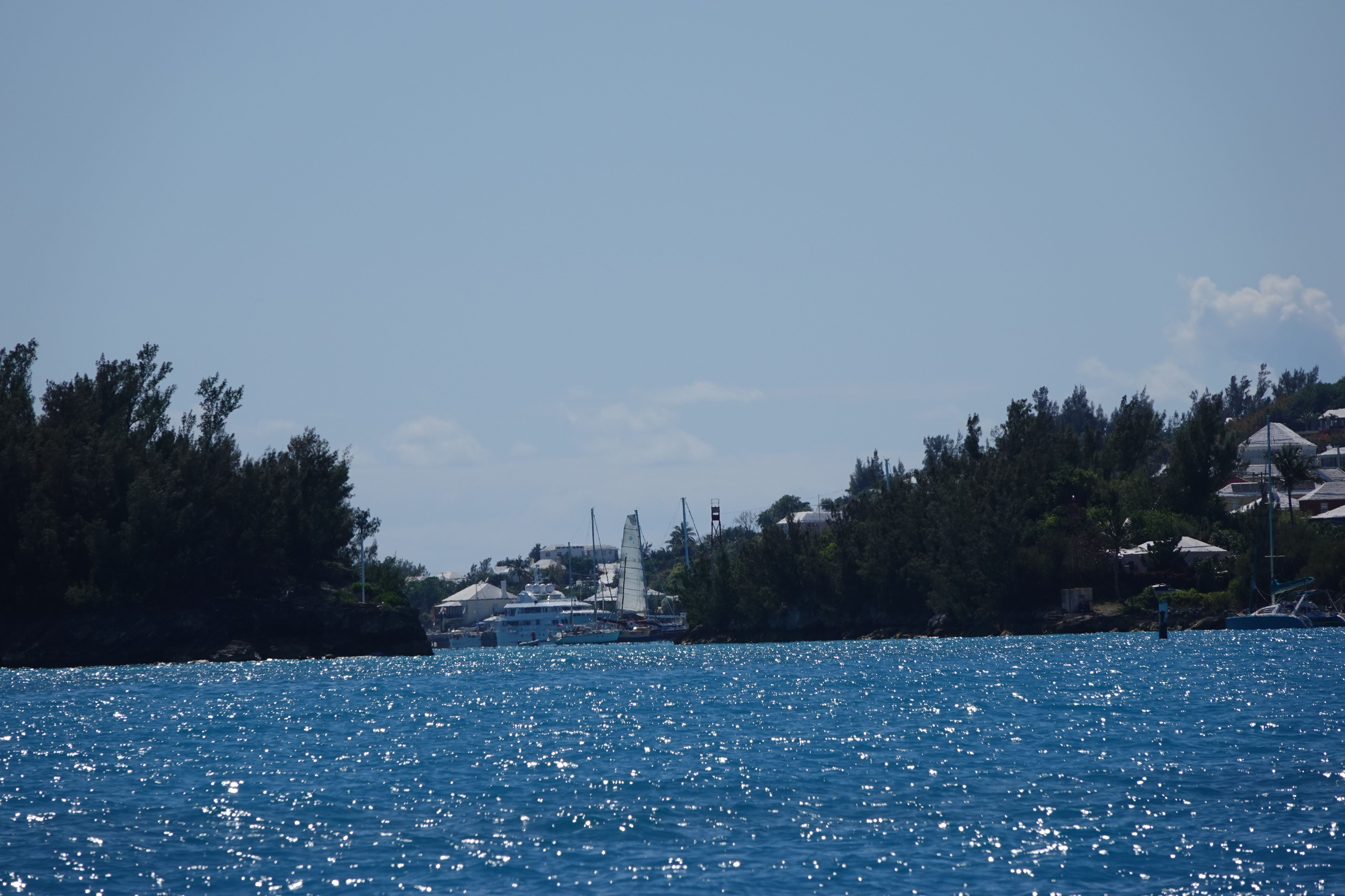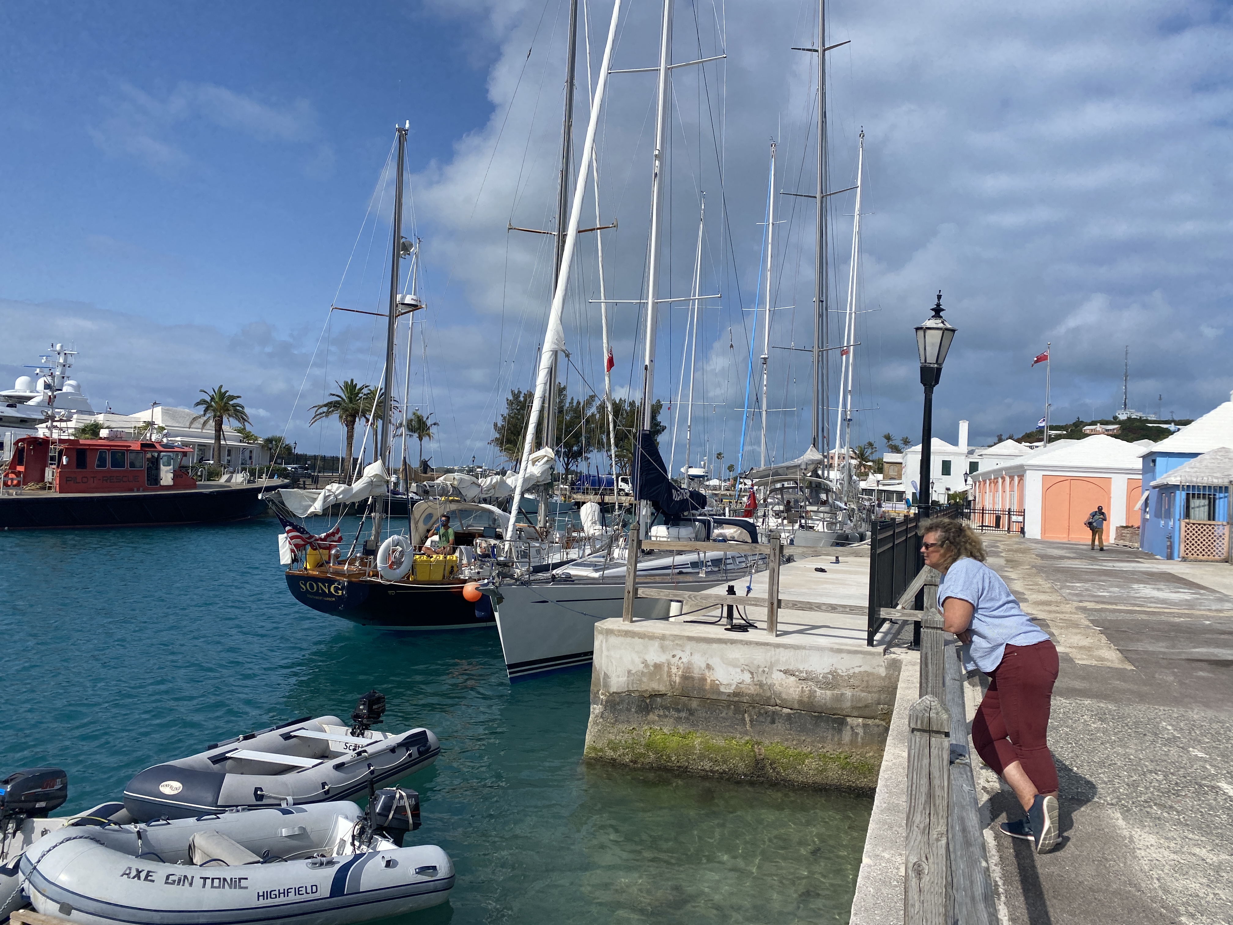 Dag 7 krijgen we Bermuda inzicht. Het weer is de laatste dagen verbeterd en met het naderen van onze bestemming verdwijnt ook de vermoeidheid van de eerdere dagen. Een paar mijl voor aankomst worden we opgeroepen door de kustwacht met het verzoek om snelheid te minderen om ruimte te geven aan een oplopend containerschip waarop een loods wordt afgezet. Een beetje overbodig gezien de afstand maar aan de andere kant fijn dat er blijkbaar goed op je wordt gelet. Om 15.00 uur passeren we de boei SPIT en sturen we aan op Town Cut. Het kanaal wat toegang geeft tot Saint George’s Harbour. Na een kleine 900 mijl leggen we aan voor het kantoor van immigration om de visa te regelen en het havengeld te voldoen. Vanaf het moment dat we binnen varen doet Bermuda ons heel plezierig aan. Het ziet er allemaal fris en goed onderhouden uit en de temperatuur is aangenaam.