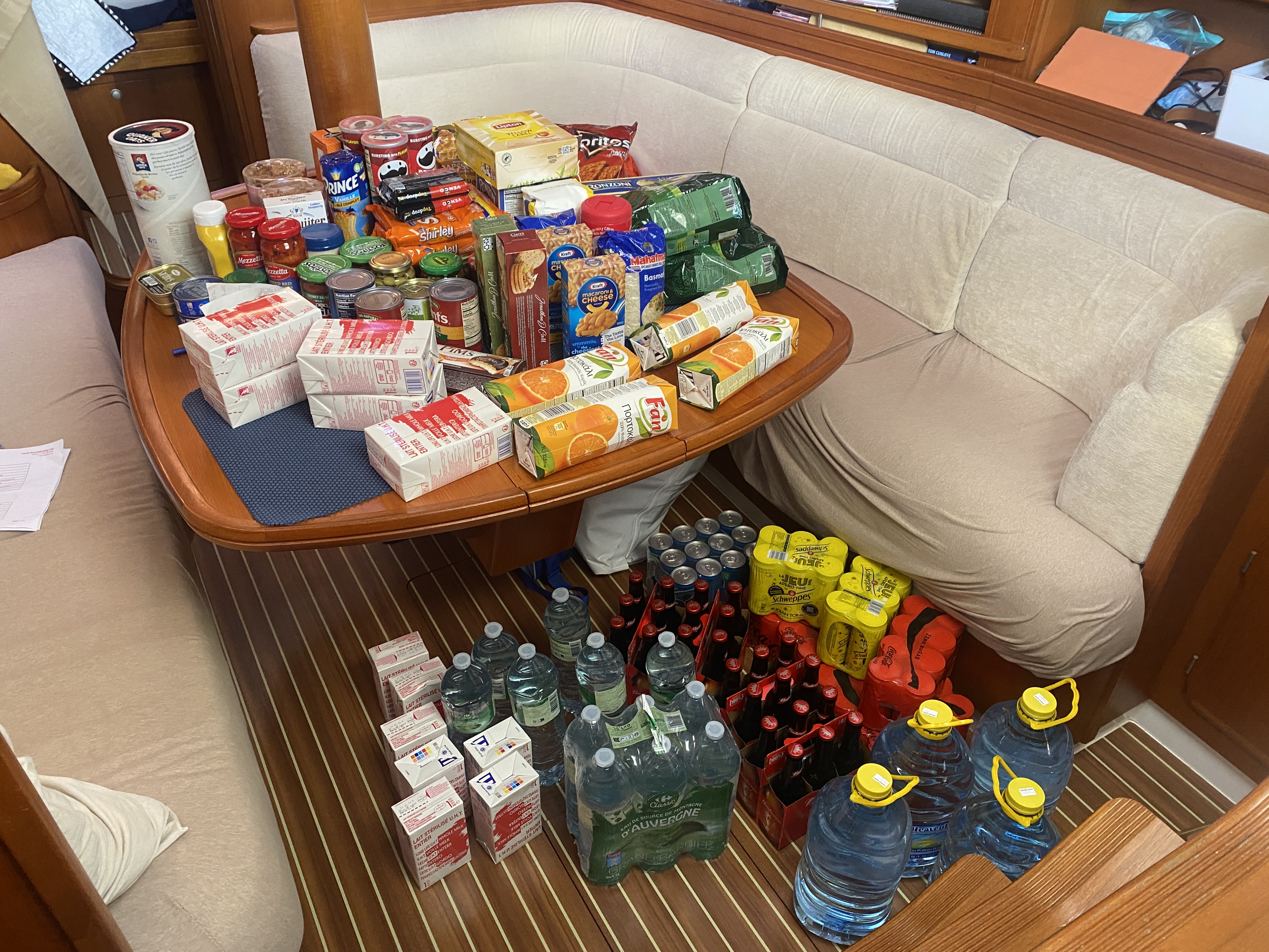 Een dag voor vertrek ronden we de inbouw van de apparatuur af en varen we een calibratierondje door de ankerplek, vullen de dieseltank en doen een inspectie van de tuigage. Tijdens het inbouwen van de apparatuur doet Kees nog een plezierige ontdekking. Sinds ons vertrek hadden we regelmatig last van “gerammel” tussen de binnen- en buitenschaal van het dek. Eindeloze zoekpartijen leverden niets op totdat Kees met zijn slankere arm tussen de 2 schalen voelt en een verdwaalde schroevendraaier tegenkomt. Hoelang deze er al heeft gezeten weten we niet maar in ieder geval is het er geen uit onze eigen gereedschapskist. Wel heel blij dat we nu van het irritante gerammel zijn verlost. Gelukkig blijkt verder alles in order en zijn we klaar voor vertrek naar de Azoren.
