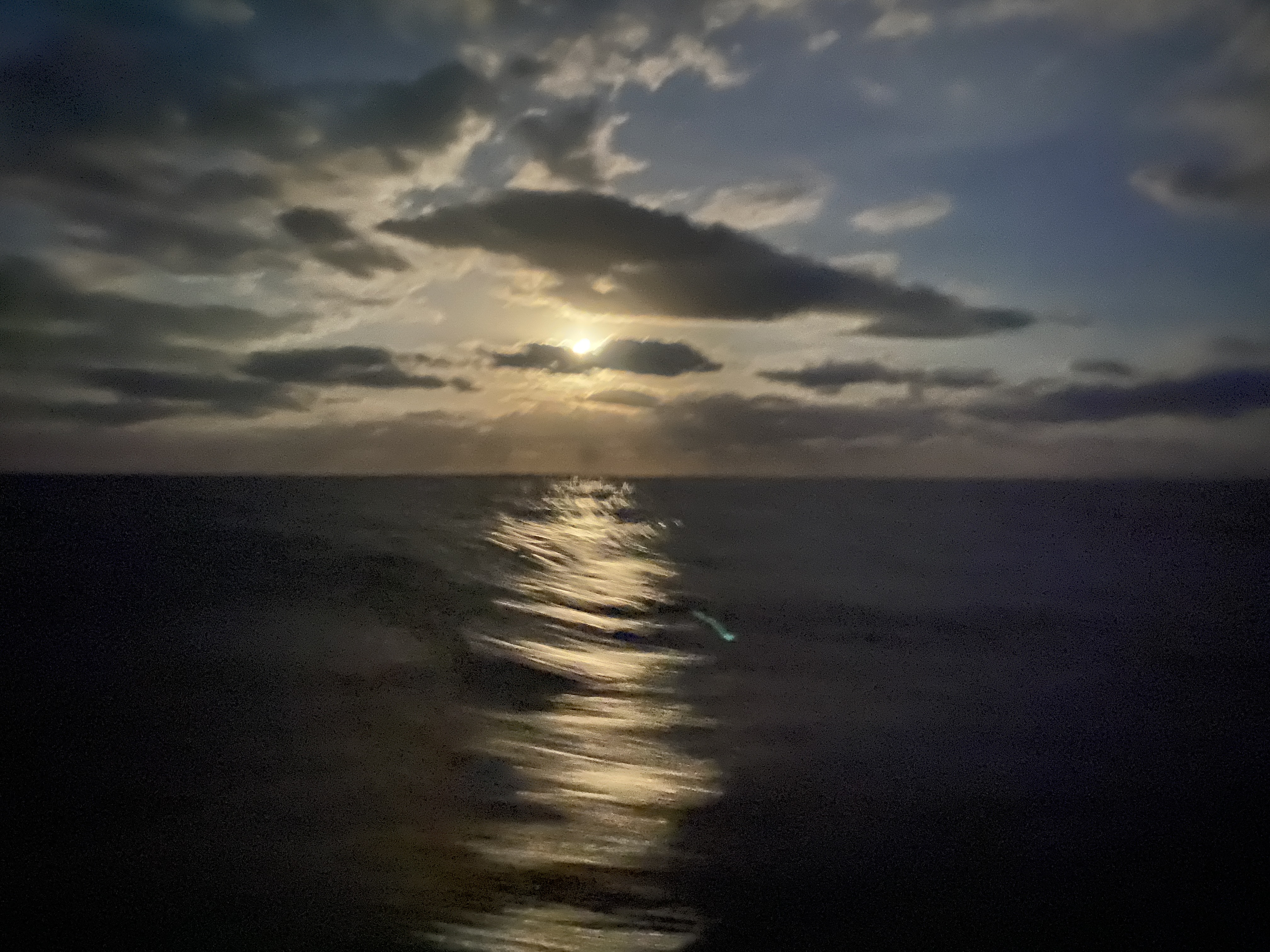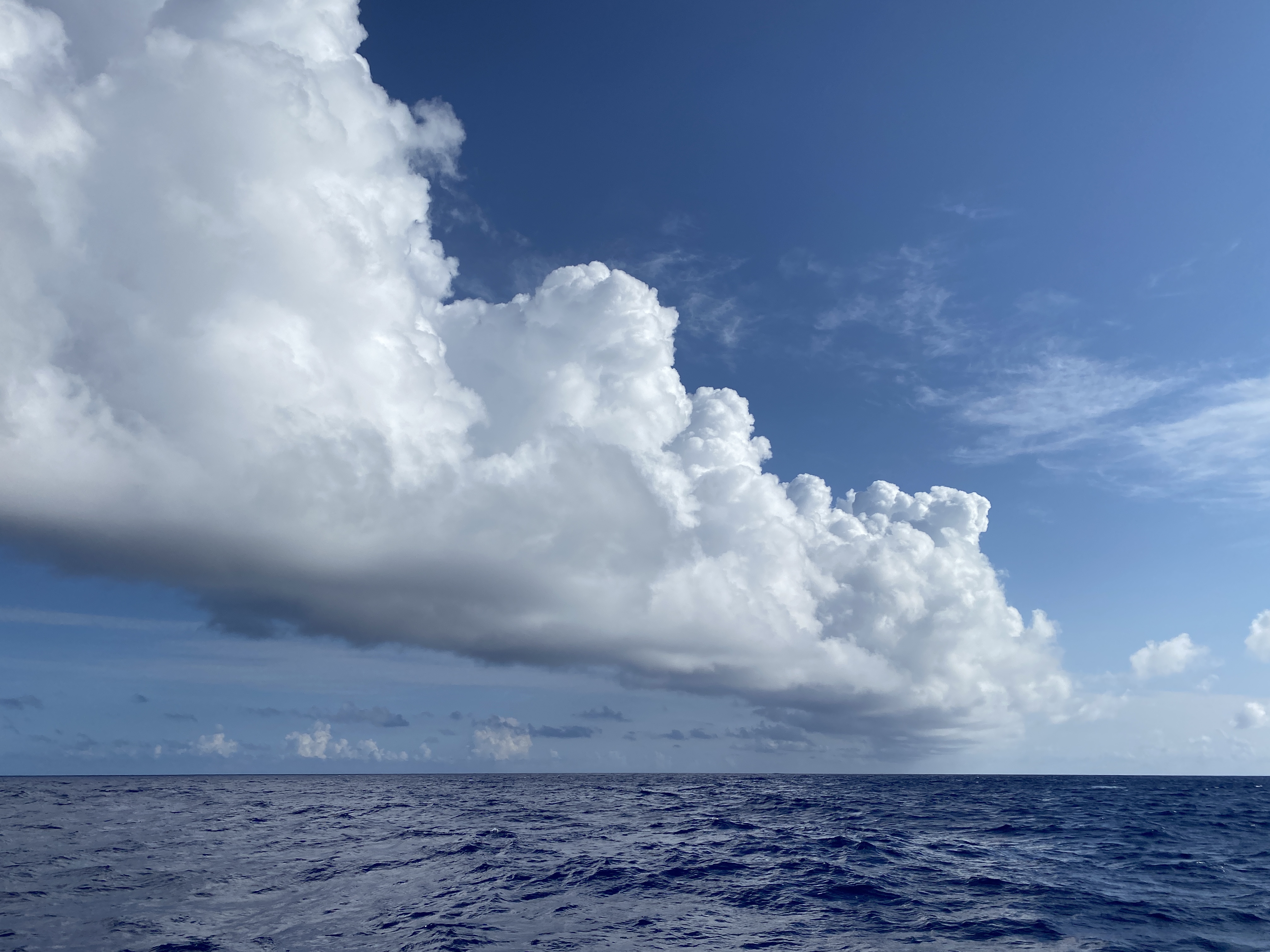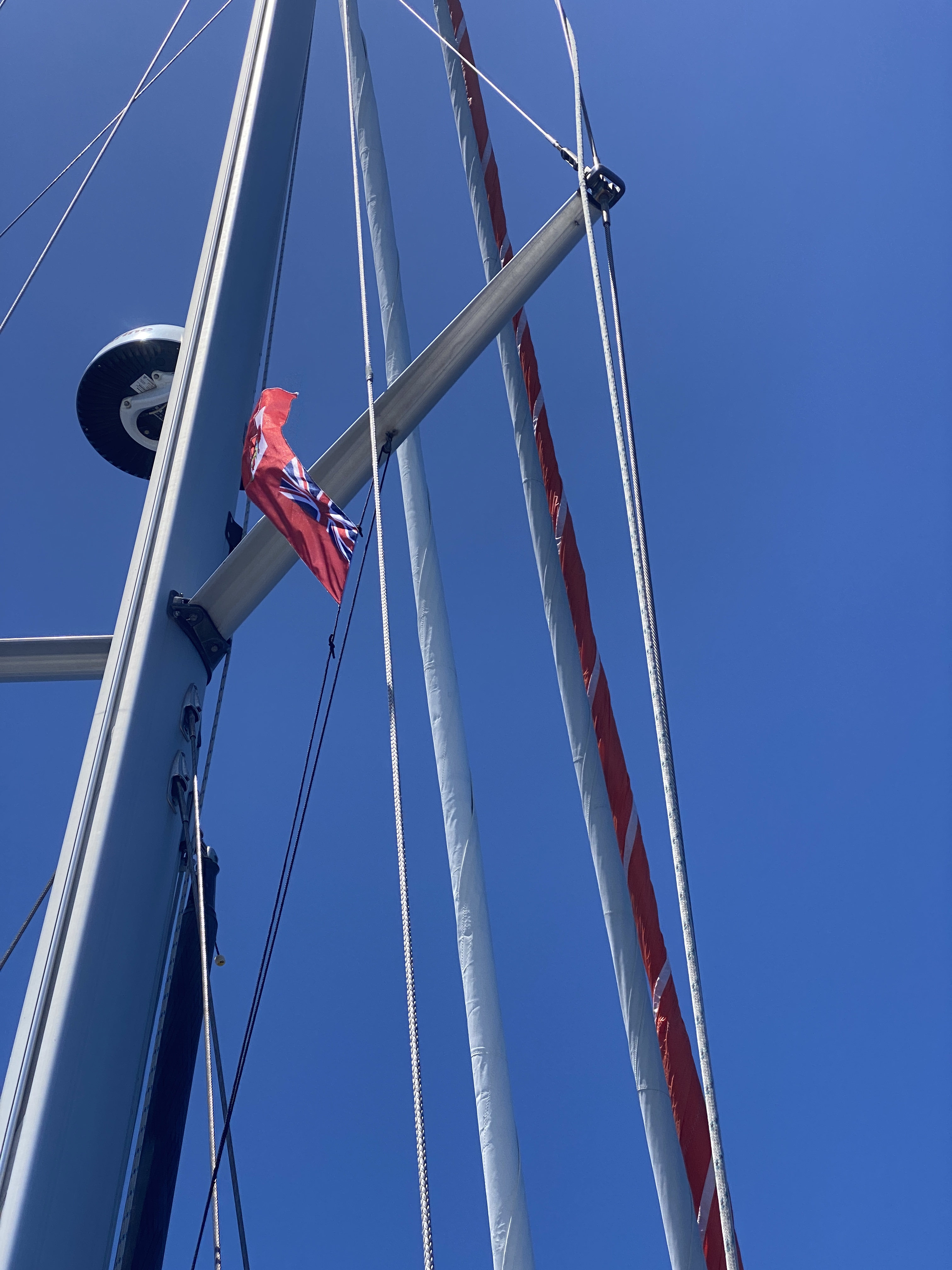 Het laatste wat we zien van het Caraïbisch gebied is Anquilla. Varend tussen Anquilla en Scrub Island werpen we een laatste blik op Saint Martin. We hebben een mooie tijd gehad in de tropen maar verlangen ook naar wat verkoeling. Dat blijkt sneller te komen dan verwacht. De eerste dagen varen we met een matig windje en ruime koers. Als eerste worden de nachten kouder en krijgen we te maken met meer squalls dan we in de voorgaande maanden bij elkaar opgeteld hadden. De zeilpakken gaan weer aan en we duiken weg achter de buiskap. Na 3 dagen onderweg passeren we een koufront en varen we veel aan de wind. In de nacht neemt de wind vrijwel altijd af en genieten we van mooie zonsondergangen. Dag 4 komen we terecht tussen vele squalls met veel regen en onweer. Zowel het log als de dieptemeter krijgen kuren. Waarschijnlijk het gevolg van de onweersbuien. Dat wordt weer klussen in Bermuda.
