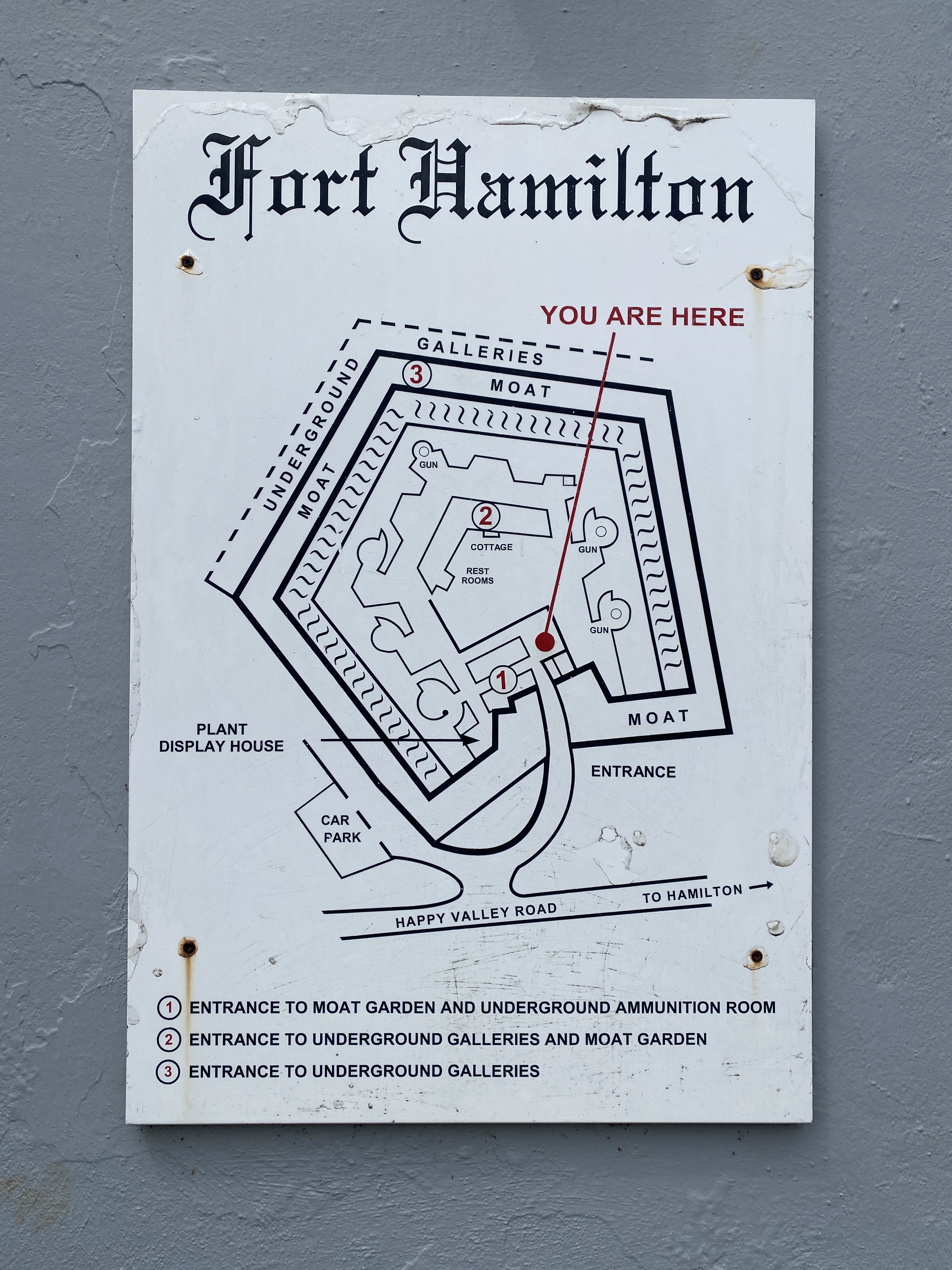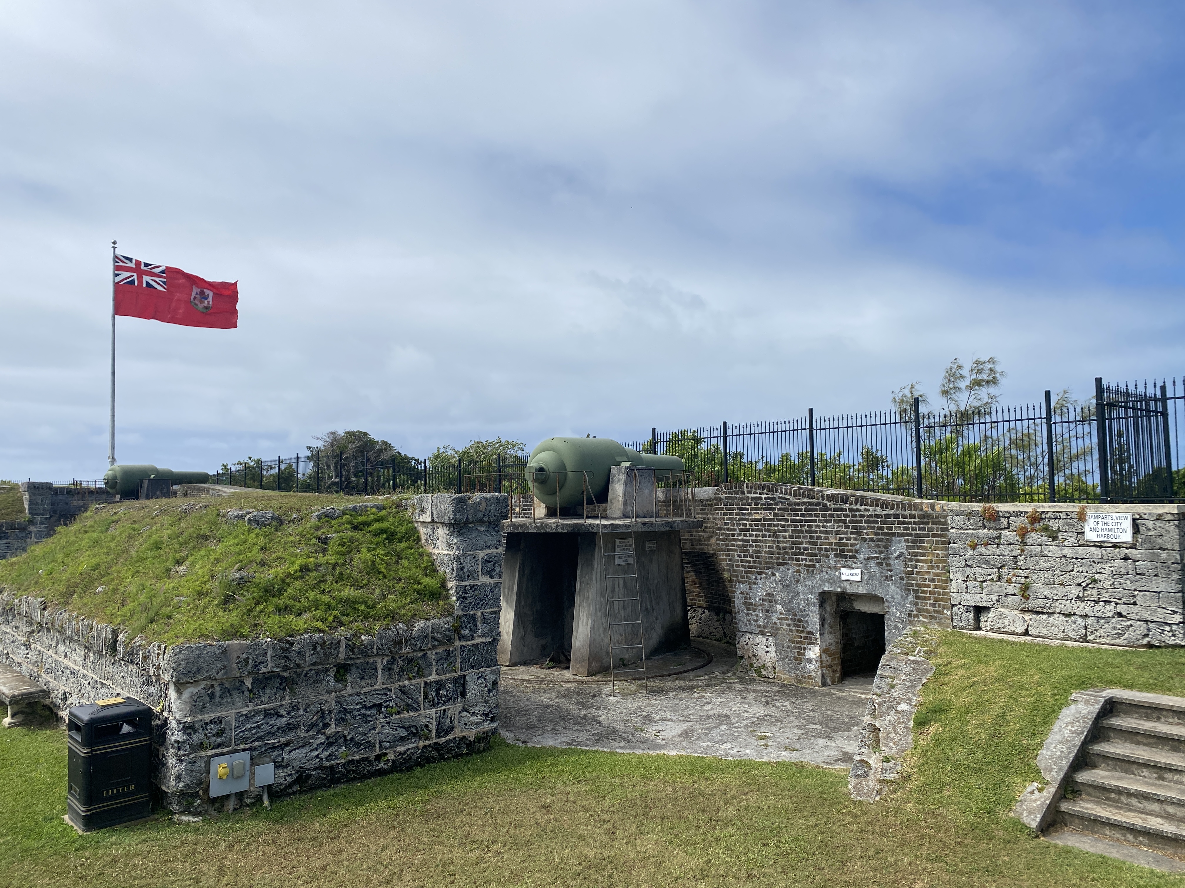 Vlak voor vertrek blijkt de pomp van het toilet te lekken en niet te repareren. Gezien de aankomende oversteek van ca. 10 dagen geen aantrekkelijke gedachte om zonder toilet te zitten. De enige plek waar een nieuwe pomp verkrijgbaar was bleek in Hamilton. Dus wederom de bus gepakt voor een tweede bezoek aan Hamilton maar nu in gezelschap van Kees, die op deze manier ook nog het nodige van Bermuda meekrijgt. We besluiten om Fort Hamilton te bezoeken. Dit hoog gelegen fort biedt een prachtig uitzicht over de omgeving en is indrukwekkend van omvang.