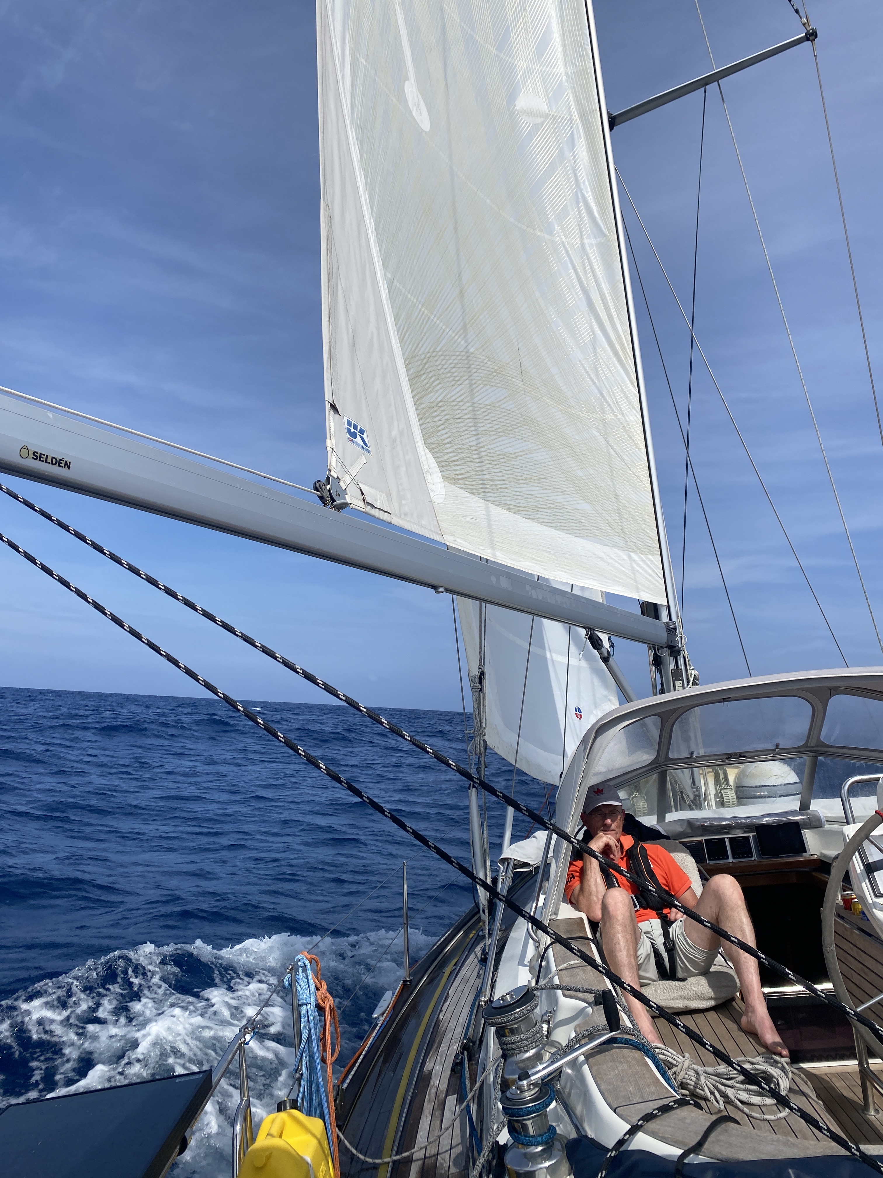 We zijn op 21 mei vertrokken uit Bermuda. Het is prima zeilweer met bij vertrek zelfs wat weinig wind. Tegelijkertijd vertrekken ook onze vrienden op de Jolly Seawitch, True North, Belle Fleur en Maaike Saadet. Iedereen met bestemming Horta. Al gauw raken we elkaar kwijt en na 2 dagen zien we ook niemand meer terug op de AIS. Regelmatig halen we via Starlink de laatste weerberichten binnen en al snel zien we de eerste lage druk gebieden achter ons aankomen. Het beloofd een pittig tochtje te worden.